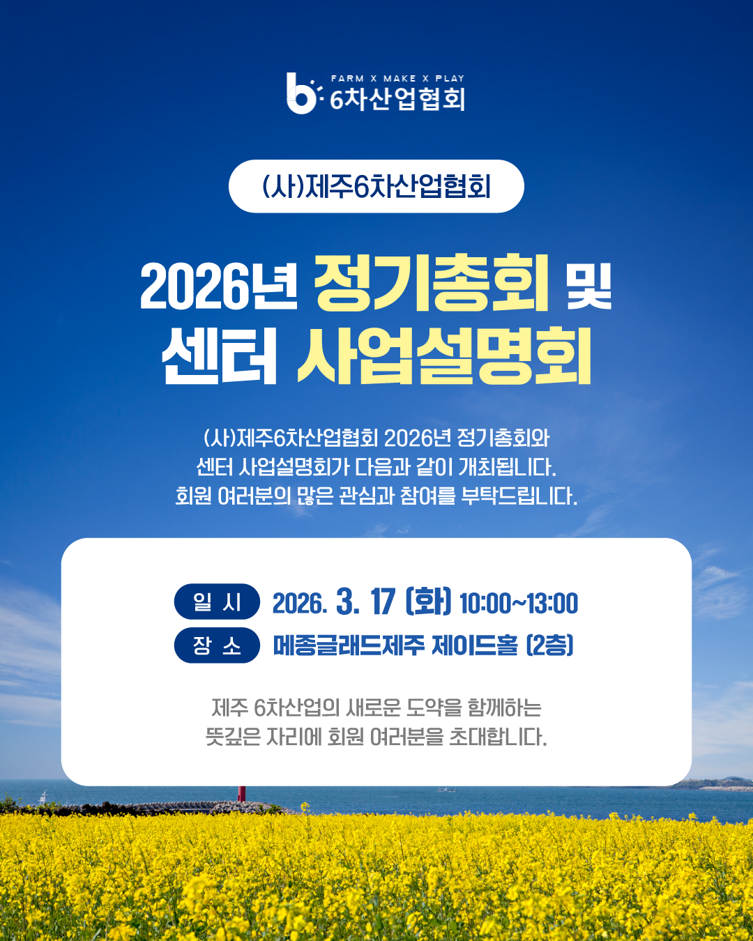 단체명: 사단법인 제주6차산업협회 | 대표: 성주엽 | 고유번호: 208-82-06638